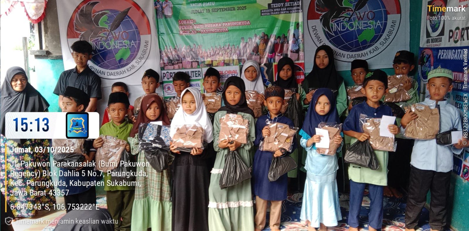 Sukabumi,web1.jurnaltipikor.com,-Dewan Pimpinan Daerah (DPD) Ikatan Wartawan Online Indonesia (IWO-I) Kabupaten Sukabumi menggelar kegiatan sosial dengan membagikan santunan dan Baju Pramuka kepada anak-anak yatim piatu yang bertempat di Kantor DPD IWO-I Kabupaten Sukabumi, Jln. Pakuwon, Perum Pusaka Bumi Parungkuda, Desa Parungkuda, Kecamatan Parungkuda, Kabupaten Sukabumi, pada Jum’at (03/10/2025).
