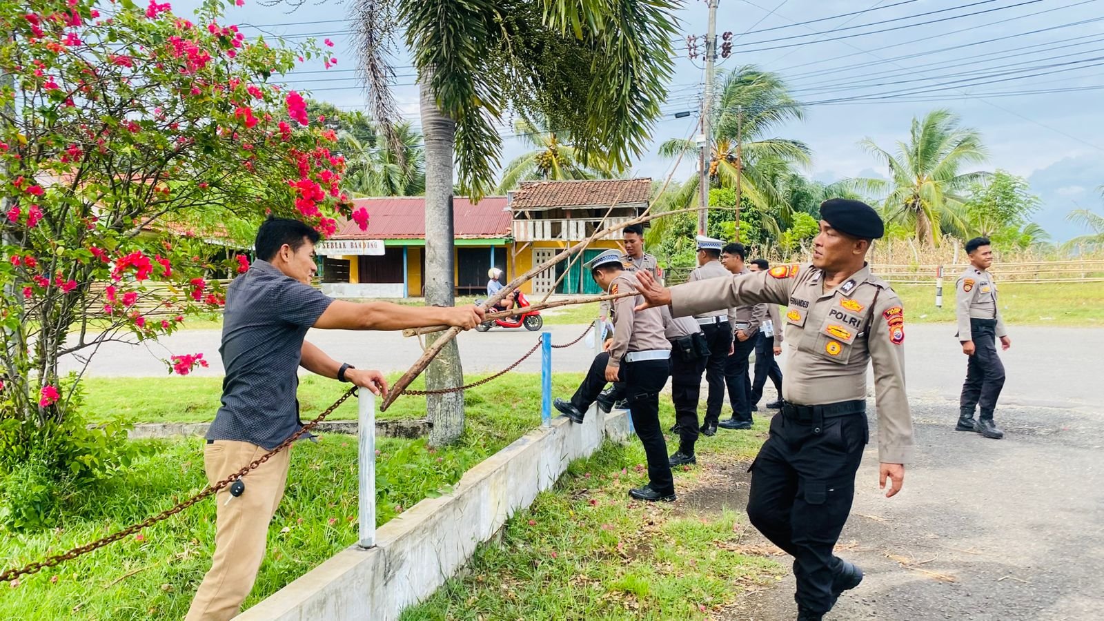 Kegiatan gotong royong ini diikuti oleh para pejabat utama dan personel Polres Kaur yang bersama–sama membersihkan area halaman kantor, selokan, taman, serta memotong ranting pohon yang mengganggu keindahan dan keamanan lingkungan.