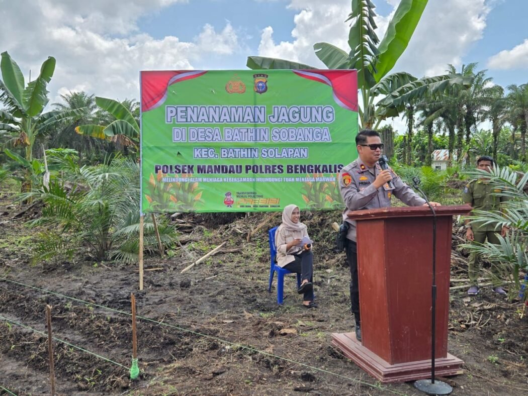 BENGKALIS, JURNAL TIPIKOR– Kepolisian Sektor (Polsek) Mandau, Polres Bengkalis, bersama unsur pemerintah daerah dan masyarakat, telah melaksanakan kegiatan pengelolaan lahan dalam rangka mendukung Program Gerakan Penanaman Jagung Seluas 1 Juta Hektar Polri yang merupakan bagian dari Program 100 Hari Asta Cita Presiden Republik Indonesia.