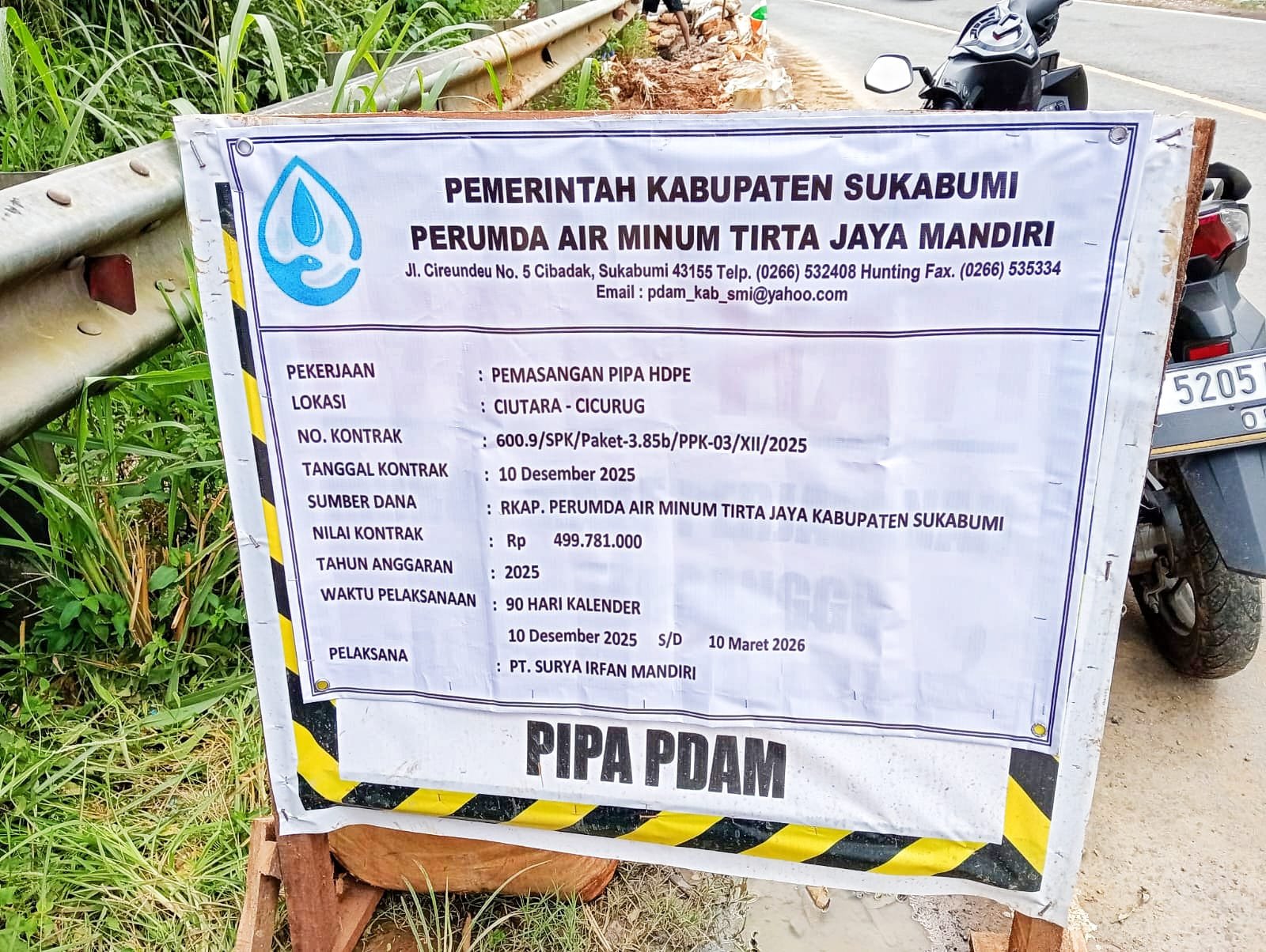 Proyek ini dibiayai oleh RKAP Perumda Air Minum Tirta Jaya Mandiri Kabupaten Sukabumi. Masyarakat dapat memantau progres pekerjaan ini untuk memastikan kualitas dan ketepatan waktu pelaksanaan.